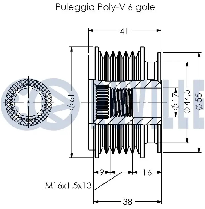 RUVILLE AUDI шків генератора A3 1.9TDI 96- Ruville 541032