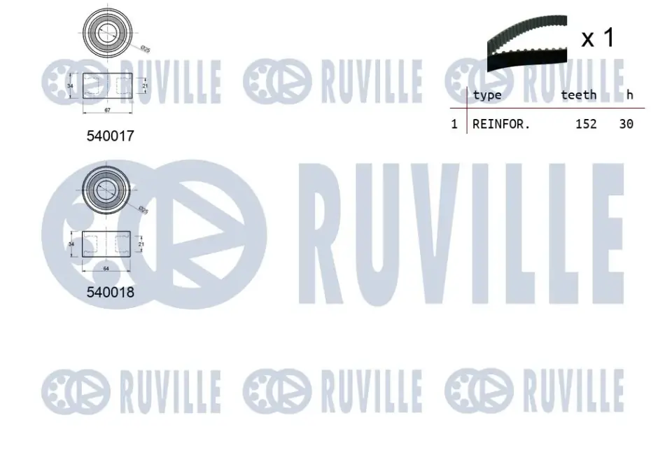 RUVILLE К-кт ГРМ (рем.+2шт. ролика) Citroen Jumper 2.8HDI -04 Fiat Ducato 2.5d, 2.8 jtd Ruville 550023