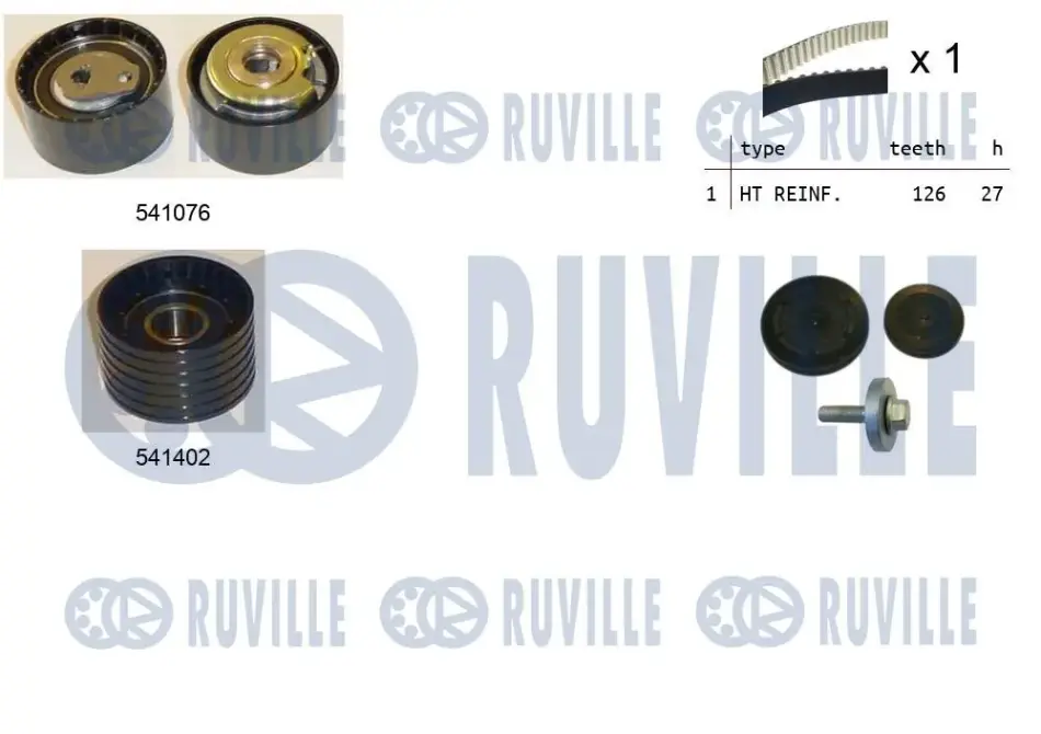 RUVILLE К-кт. ГРМ (ремінь+ 2шт. ролика+кріплення) Renault Laguna II 2.0 Ruville 550278