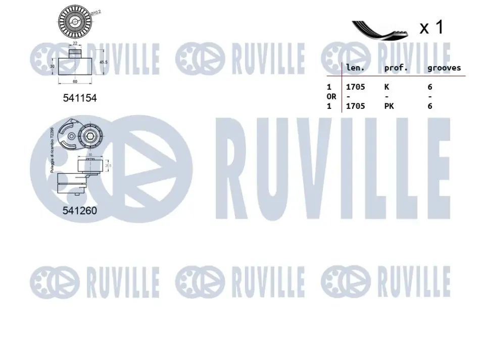RUVILLE CITROEN К-кт ГРМ (ремінь + 2 ролика) BERLINGO 1.6 05-11, PEUGEOT PARTNER Мінівен (5_, G_) 1.6 05-15 Ruville 570093