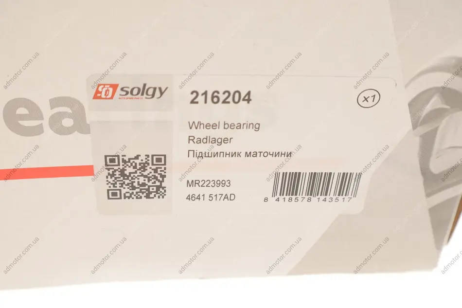 Підшипник маточини (передньої) Chrysler Grand Voyager 00- Solgy 216204