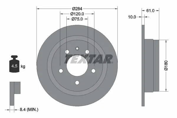 Диск гальмівний задн Лів/Прав BMW 2500-3.3 (E3), 5 (E28), 6 (E24) NISSAN MICRA V 1.0-3.5 05.71- Textar 92022400