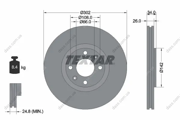 Товщина гальмівного диску (мм): 26.0