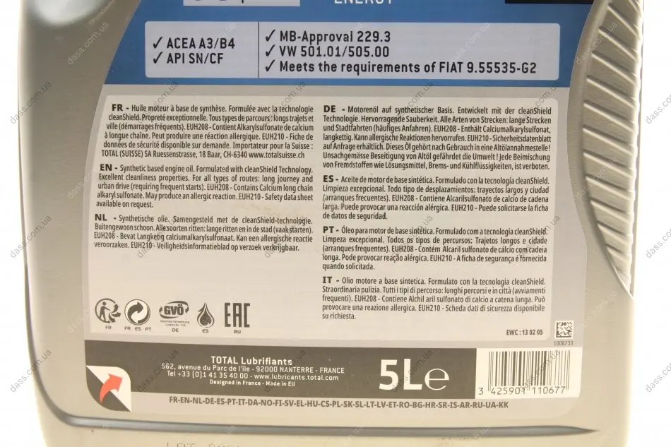 Олива 10W40 Quartz 7000 Energy (5L) (MB229.3/VW505.00) заміна на 214114 TOTAL 216678