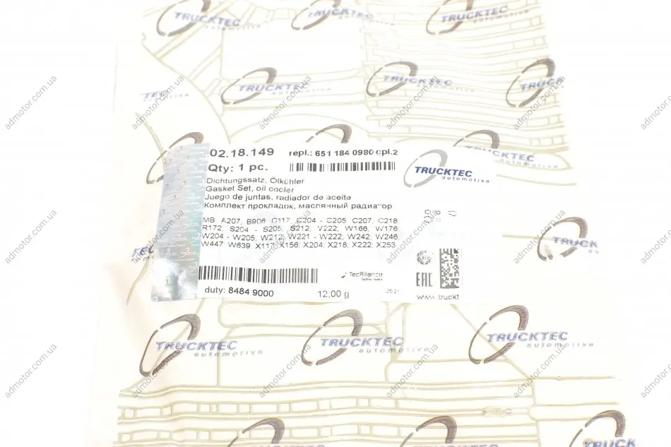 Прокладка радіатора масляного MB Sprinter OM 651 (к-кт) TRUCKTEC 0218149