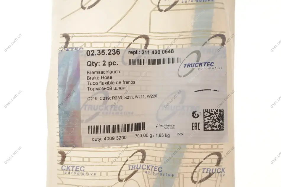 Шланг гальмівний (задній) MB E- class (W211) 02-09 Trucktec 0235236