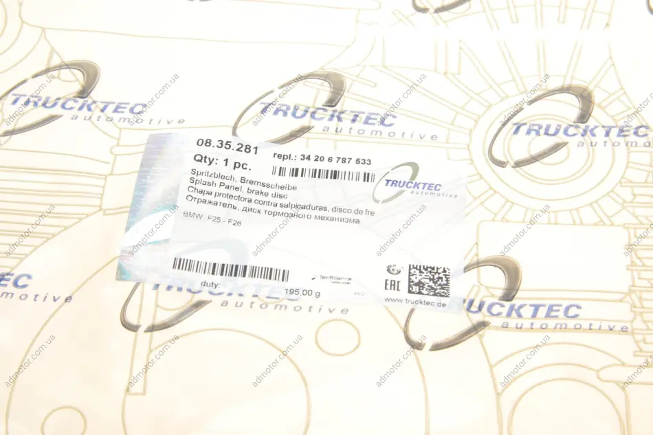 Захист диска гальмівного (заднього) X3 (F25)/X4 (F26) 11-18 B47/N20/N55/N57 TRUCKTEC 0835281