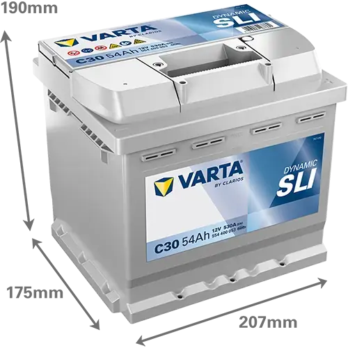 Акумулятор VARTA 12В 54Агод./530А (EN) Dynamic SLI (R+) 207x175x190 B13 - монтажний фланець 10.5мм (пусковий) VARTA 554400053K262