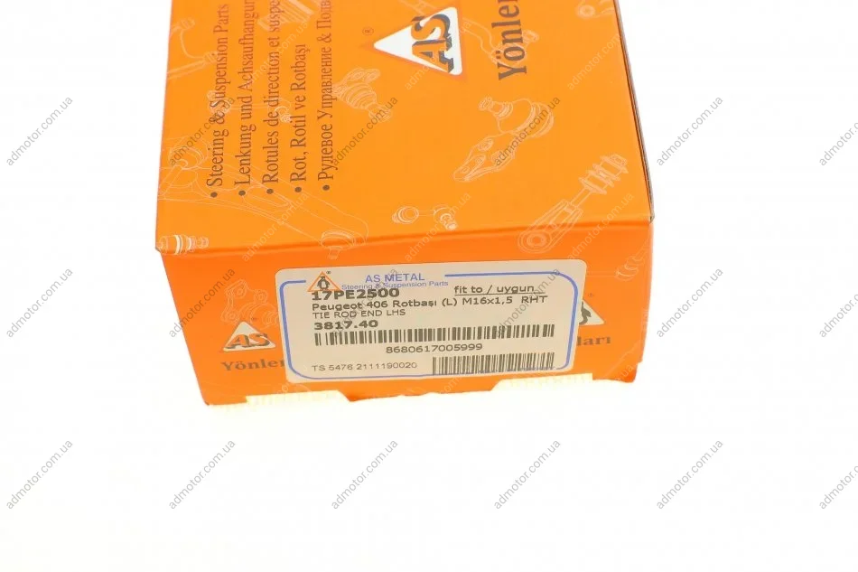 Наконечник тяги рульової (L) Peugeot 406 95-04 (поперечн.) ASMETAL 17PE2500