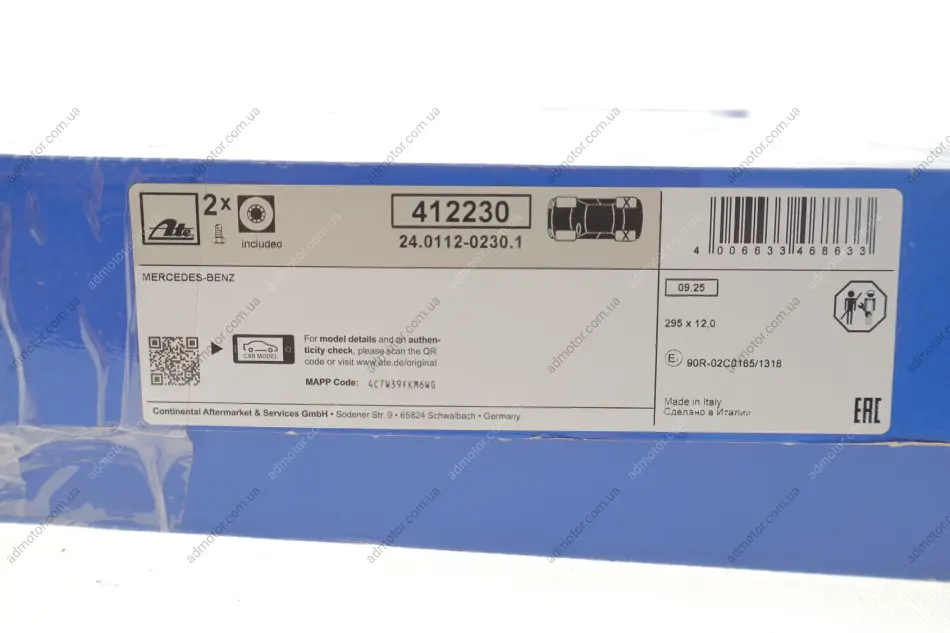 Проверочное значение: ECE R90 APPROVED