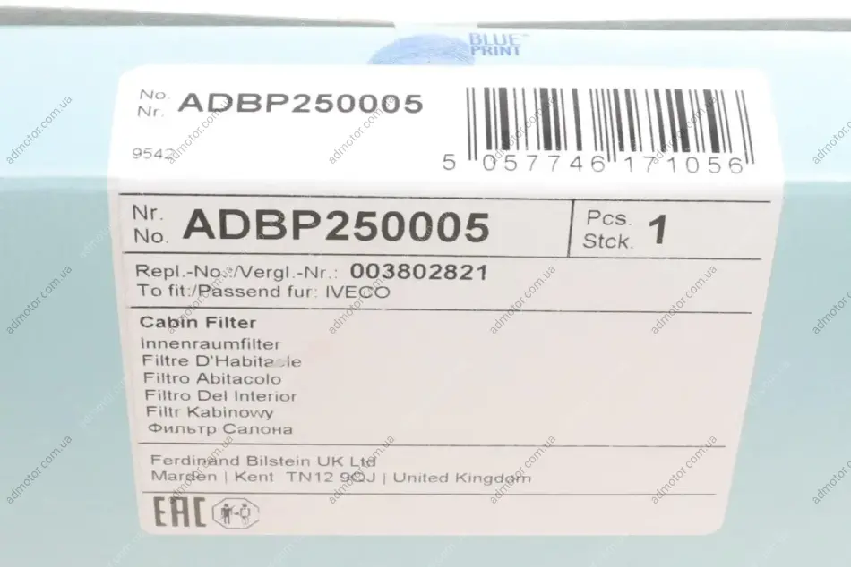 Фільтр салону Iveco Daily 06-14 BLUE PRINT ADBP250005