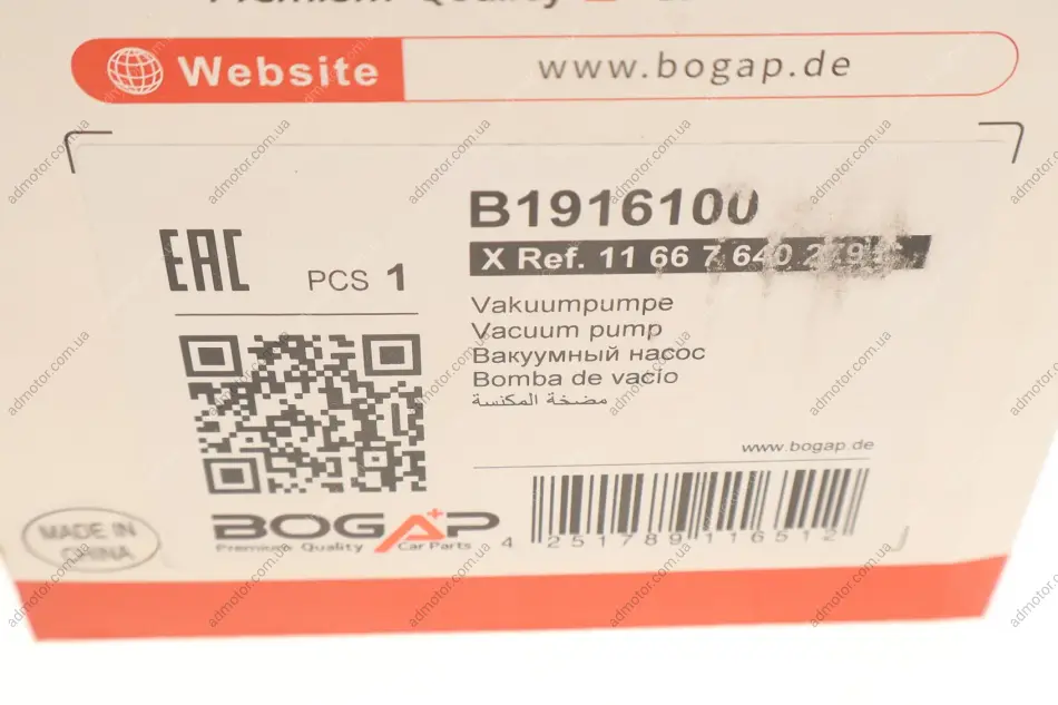 Насос вакуумний BMW 1 (E81-88)/3 (E46-93)/X3 (E83)/Z4 (E85) 1.8/2.0 00-15 (N46) BOGAP B1916100