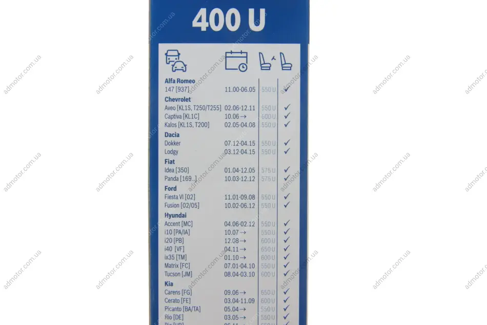 (Ford C-Max, Grand C-Max, Alfa Romeo Giulietta, Ford Fiesta, Escort, Nissan Almera, Fiat Panda, Opel Corsa, Kadett, Ascona, Mercedes W460, W461, W463 G-Class)