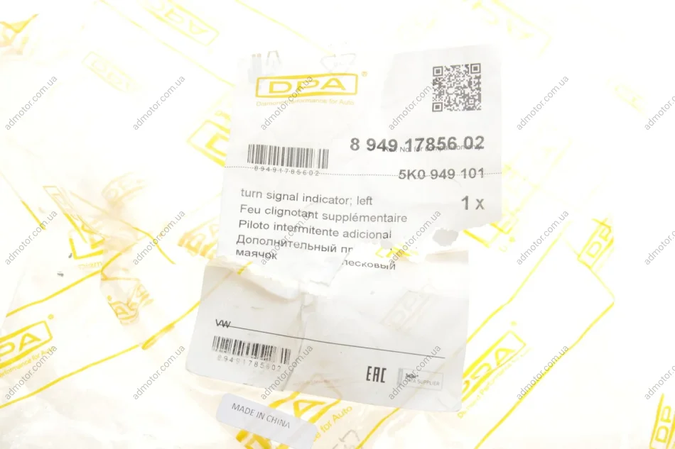Повторювач повороту на дзеркало VW Golf VI 08-12 (L) DPA 89491785602