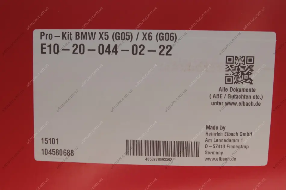 Комплект пружин (Pro-Kit) BMW X5 (G05/F95)/X6 (G06/F96) 3.0D/4.4 B57/N63 18- (4 шт.) EIBACH E10200440222