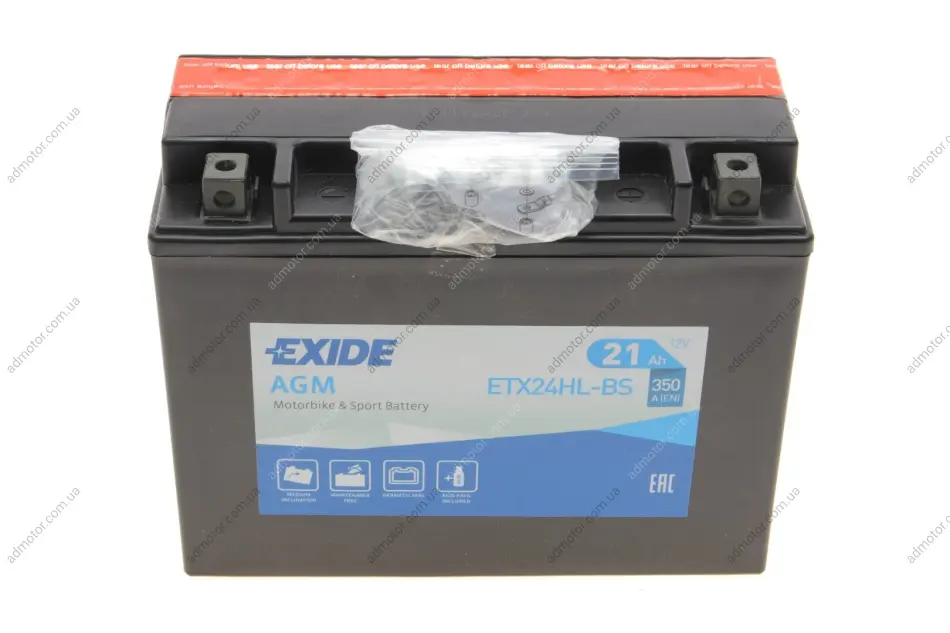 Акумуляторна батарея 21Ah/350A (205x87x162/+R/B0) (AGM) (мото) (сухозаряджений) EXIDE ETX24HLBS