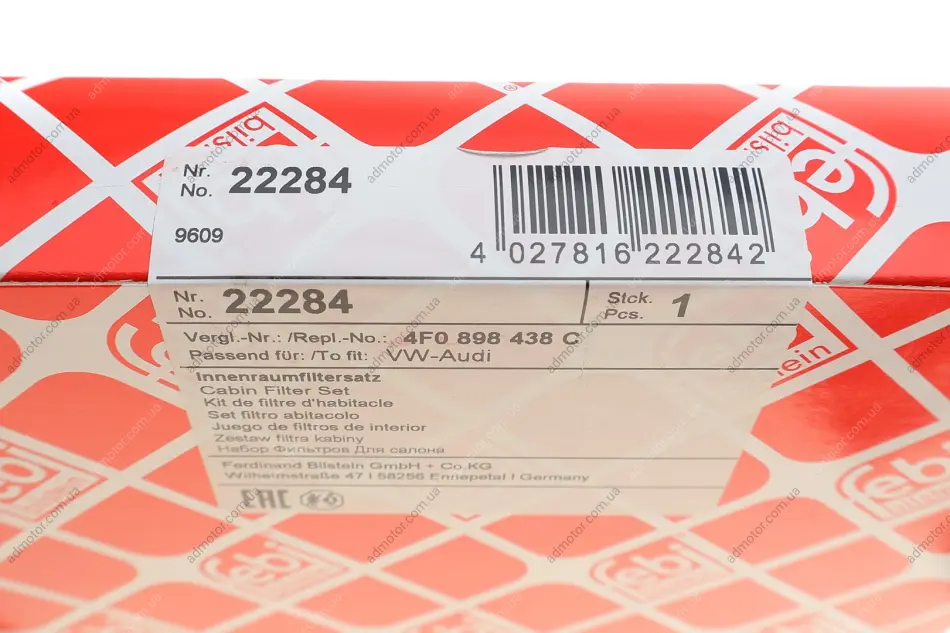 Фільтр салона Audi A6 2.0/2.7TDI 04- (угольный) (к-кт 2 шт.) FEBI BILSTEIN 22284