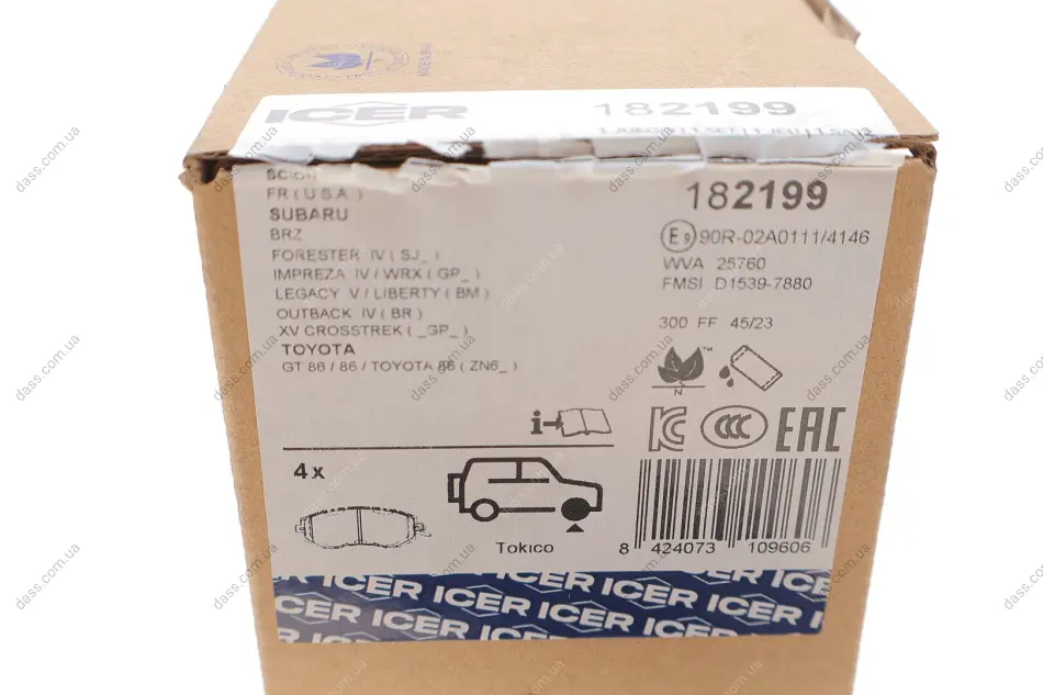 Колодки гальмівні (передні) Toyota GT 86 12-/Subaru Forester/Impreza/Legace V/Outback/XV 07- Icer 182199