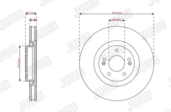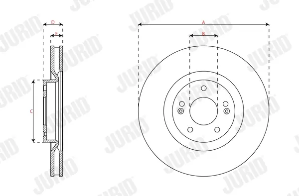 JURID HYUNDAI Гальмівний диск передній SANTA FE IV (TM, TMA) 2.2 CRDi 18-, KIA SORENTO IV (MQ4, MQ4A) 2.5 MPI 21- Jurid 563894JC