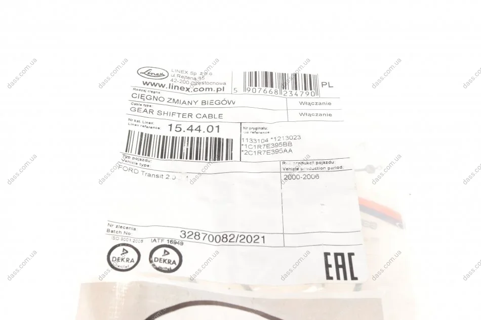 Трос перемикання передач Лів (820mm/530mm) FORD TRANSIT 2.0D/2.3/2.4D 01.00-05.06 LINEX 154401