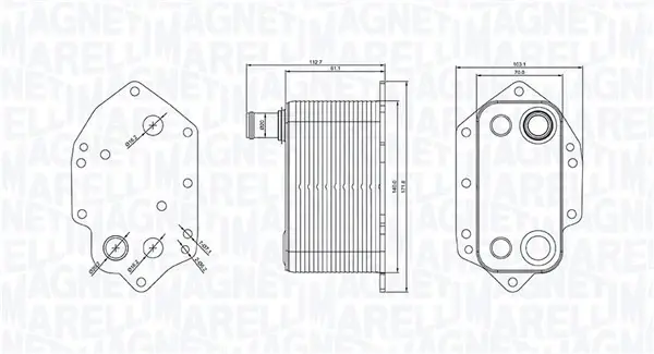 Масляний радіатор BMW 3 (E46), 3 (E90), 3 (E91), 3 (E92), 3 (E93), 5 (E60), 5 (E61), 6 (E63), 6 (E64), 7 (E65, E66, E67), X3 (E83), X5 (E53), X5 (E70), X6 (E71, E72) 2.5D/3.0D 06.02-12.13 MAGNETI MARELLI 350300004000