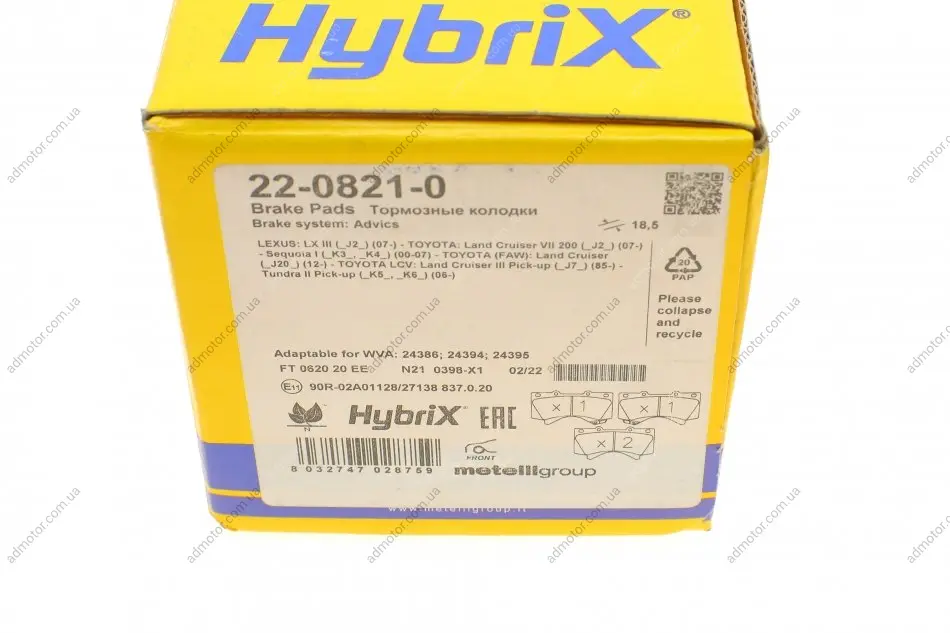Колодки гальмівні (передні) Toyota Land Cruiser Prado 09-/200/Sequoia/Tundra/Lexus LX 07- Metelli 2208210