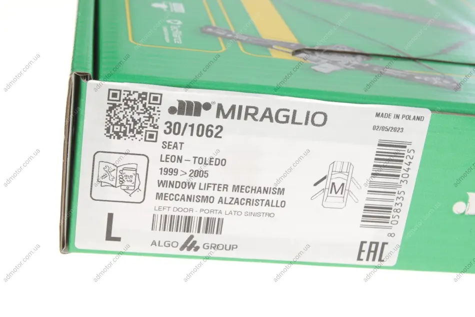 Склопідіймач (передній) Seat Leon/Toledo 98-06 (L) (електро) (без моторчика) MIRAGLIO 301062