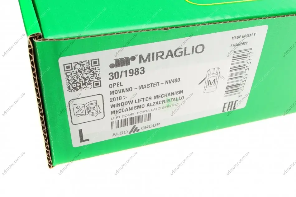 Склопідіймач (передній) Renault Master III/Opel Movano 10- (L) (електро) (без мотора) MIRAGLIO 301983