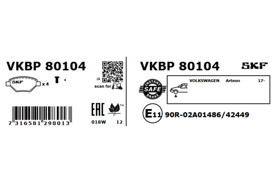 SKF VW К-т передніх гальм. колодок Golf VII, AUDI A3 13-, SKODA Octavia 12- SKF VKBP80104