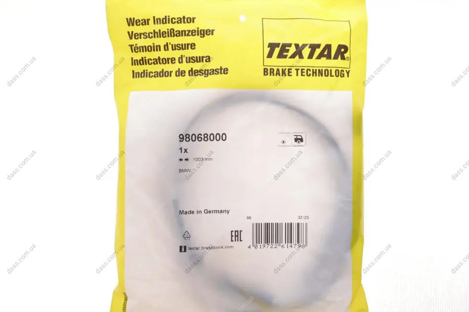 Датчик зносу гальмівних колодок (задніх) BMW 5 (G60/G90/G68) 23-/7 (G70) 22- (L=1003mm) Textar 98068000