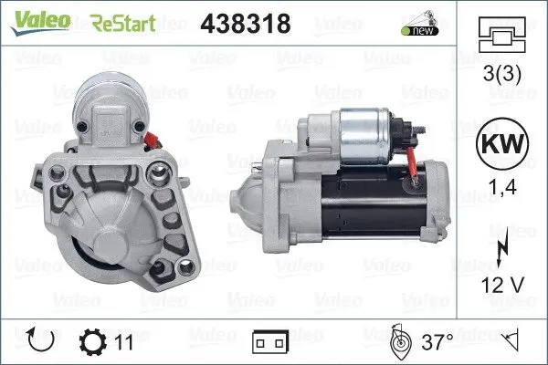 Стартер (12В, 1,4кВт, новий із заставою) VOLVO S60 II, S60 III, S80 II, S90 II, V40, V60 I, V60 II, V70 III, V90 II, XC40, XC60 I, XC60 II, XC70 II, XC90 II 1.5-2.5 10.12- Valeo 438318