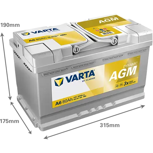 Акумулятор VARTA 12В 80Агод./800А (EN) Dynamic AGM START&STOP AGM (R+) 315x175x190 B13 - монтажний фланець 10.5мм VARTA 580901080K262
